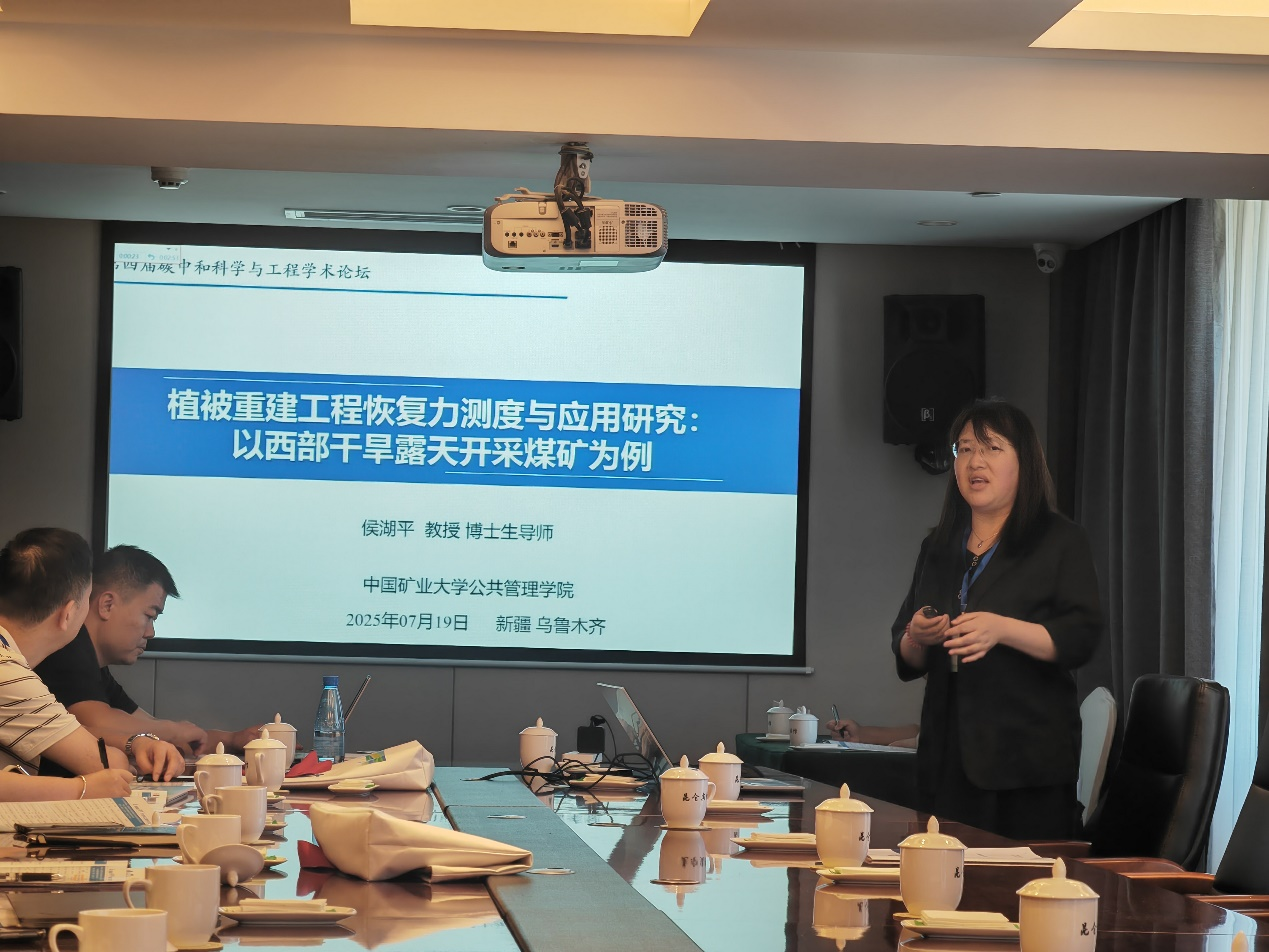 会议主要学术观点及评析: 第四届碳中和科学与工程学术论坛在新疆乌鲁木齐市召开。来自包括清华大学、中国华能集团在内的高校和科研机构的科技工作者200余人线下参加会议,700余人参加了线上直播。侯湖平教授参加“矿区地质灾害防治与生态修复” 专题研讨,应邀做了“植被重建工程恢复力测度与应用研究”的报告,从植被重建工程恢复力的内涵、测度方法、案例应用等方面进行了详细报告,提出通过植被工程恢复力评价可以助力生态修复工程效果,促进修复后生态系统的可持续发展。 本届会议为实现煤炭能源低碳化的有效路径、煤炭全生命周期减碳和去碳技术等提供了交流平台。