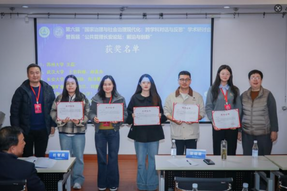 会议主要学术观点及评析: 11月15日,第六届“国家治理与社会治理现代化:跨学科对话与反思”学术研讨会暨首届“公共管理长安论坛:前沿与创新”在长安大学召开。会议由长安大学人文学院与西北大学公共管理学院联合主办,共设置两场主旨报告与五场平行分论坛。 会议特邀包国宪教授、张思锋教授、张贤明教授、李燕凌教授、韩志明教授、余敏江教授、何得桂教授、任宗哲教授,分别围绕政府绩效管理、积极老龄化、责任导向公共行政、城乡公共治理、政务热线运行逻辑、环境治理体系、集成型治理、基层治理现代化等议题做主旨发言。 来自全国80余所高校和科研院所的150多位专家学者参会。平行分论坛重点研讨了“国家治理理论创新与实践探索”“社会治理理论创新与实践探索”“国家治理的数智化转型”等五个专题。其中,本人在分论坛二作题为《制度韧性视角下突发公共事件中社区“平急转换”因何失灵:“应急能力—社区韧性”的分析框架》的论文汇报,并获评“优秀论文奖”。“公共管理长安论坛”为提升国家治理能力贡献学术智慧。