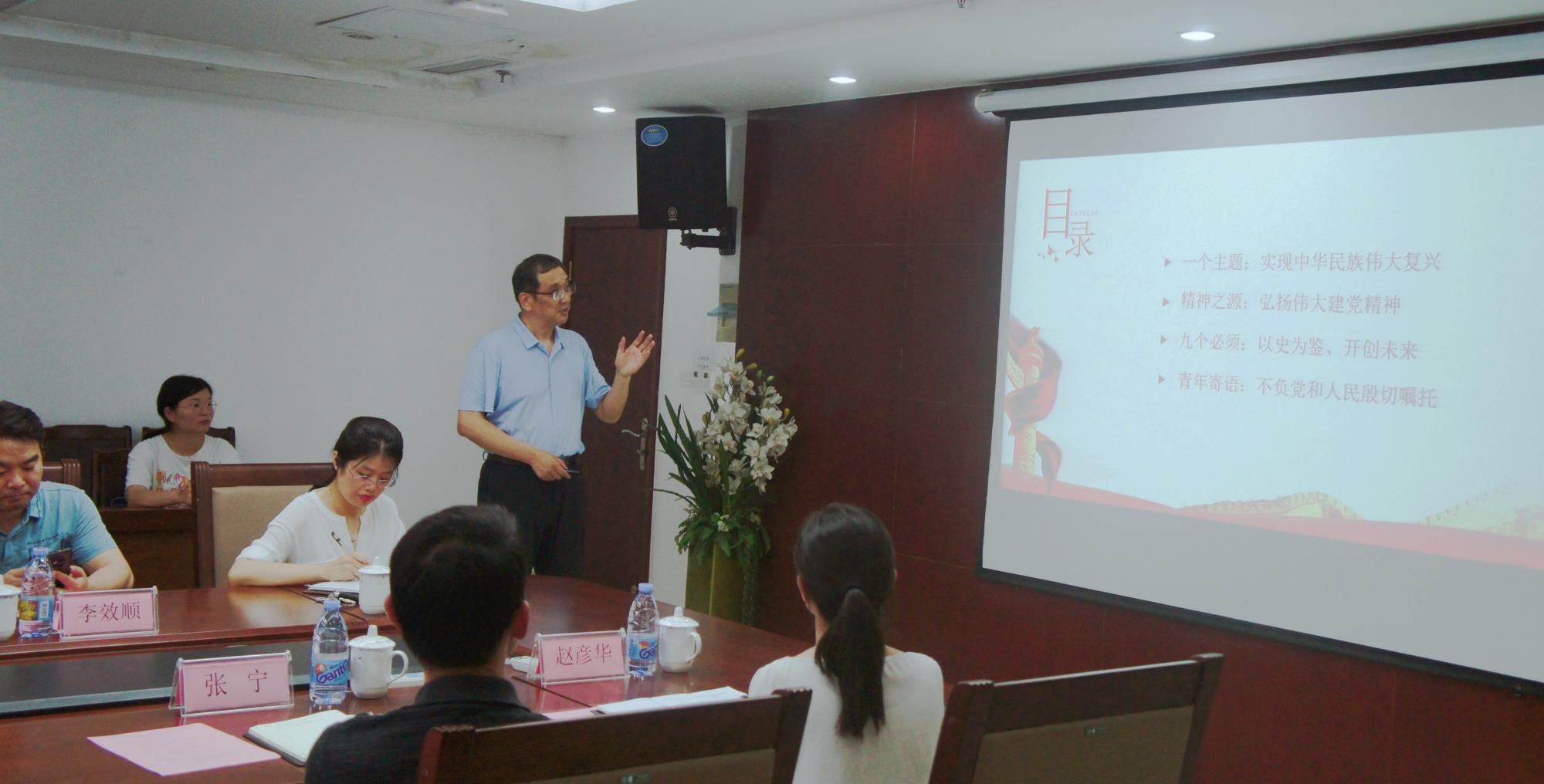 仪式结束后,公共管理学院党委书记李长贵教授以“百年奋斗路 启航新征程-学习习近平总书记在建党100周年纪念大会上的讲话”为题,分别从一个主题、精神之源、九个必须、青年寄语四个方面为大家带来了一堂生动的党课。李长贵书记强调要从党的光辉历史中汲取阔步新征程的磅礴力量,坚守初心、勇担使命,立足实际、守正创新,用实际行动将学习成果转化为提升工作质效、推动事业发展的不竭动力。