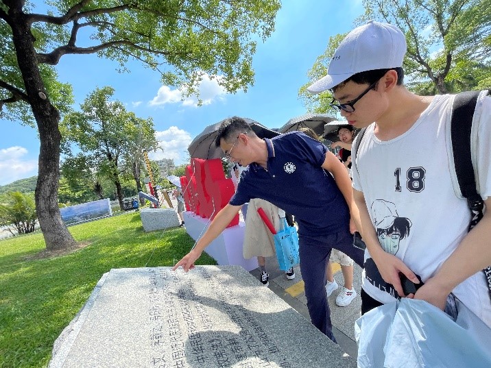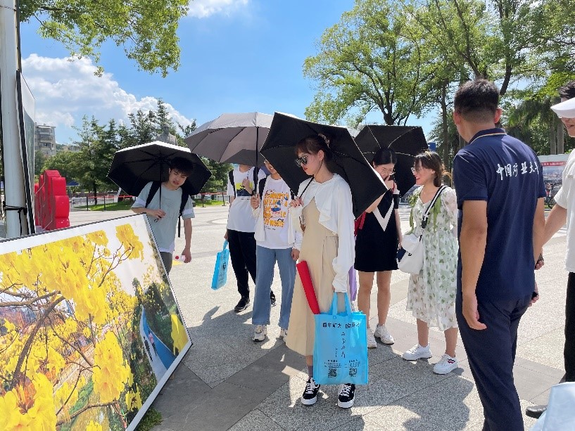 为帮助成员们迅速了解广州的当地文化背景和风土人情,经过商议,小组成员决定第一天的实习之旅从探访当地红色经典文化开始。刘海明老师带领调研组的成员们来到中山公园参观红色摄影展,并为成员们解读摄影作品的内涵和公园内的文字介绍。