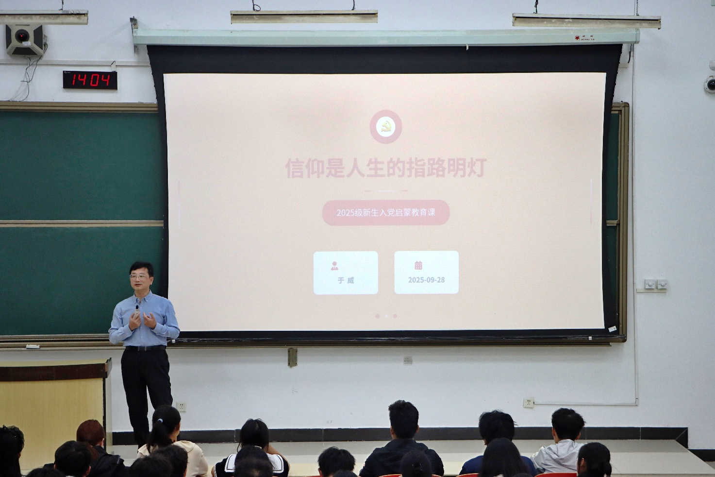 9月28日下午,公共管理学院于博二C101开展新生“入党启蒙教育”活动。此次活动由院党委书记于威主讲,25级辅导员刘卓主持,全体25级本科新生参与。