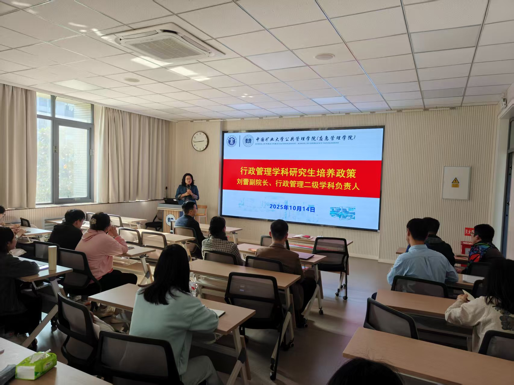 10月14日下午,2025级行政管理专业研究生培养政策宣讲会于文科楼A301举行。院长王义保、副院长刘蕾,专业导师代表刘雪凤、杨超、翟军亮、韦长伟、张辉、唐仕朝,以及2025级研究生参加。本次会议由行政管理学科秘书曹惠民主持。