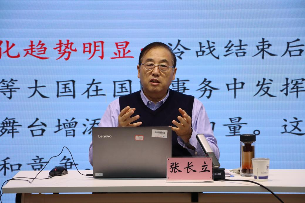 讲座中,张长立教授首先溯源“百年未有之大变局”的提出背景,详解其历史跨度与深刻内涵,指出这一变局既涵盖世界经济、政治、科技、文化的全方位变革,更见证中国从边缘走向中心的历史性跨越。他通过翔实数据展示中国发展奇迹,让同学们直观感受国家实力跃升。