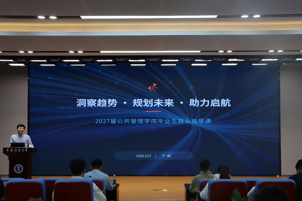 3月27日下午,公共管理学院于公管大讲堂召开2023级本科生就业指导课。此次活动由院党委书记于威主讲,院党委副书记刘海明出席,23级本科全体同学共同参与。院团委书记陈妍主持本次大课。