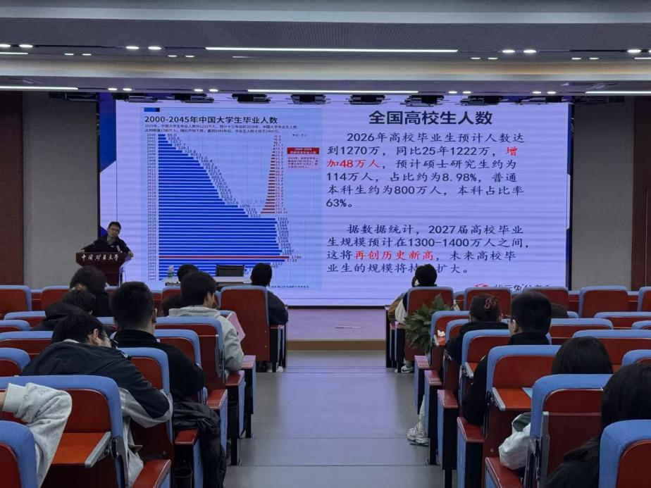 本次专题辅导围绕“就业前景分析、公考考情解读、公考备考规划”三大核心模块展开,为同学们梳理了职业规划的科学方法,指导大家如何结合自身优势匹配岗位、制定分阶段备考计划,避免盲目备考,提升备考效率。2022级本科生黄宇航结合自身备考经历,从备考心态调整、资料选择、时间管理、笔试面试经验等方面,为同学们分享了真实的备考心得,用亲身经历解答了同学们在备考中常见的困惑,为学弟学妹们提供了宝贵的参考。