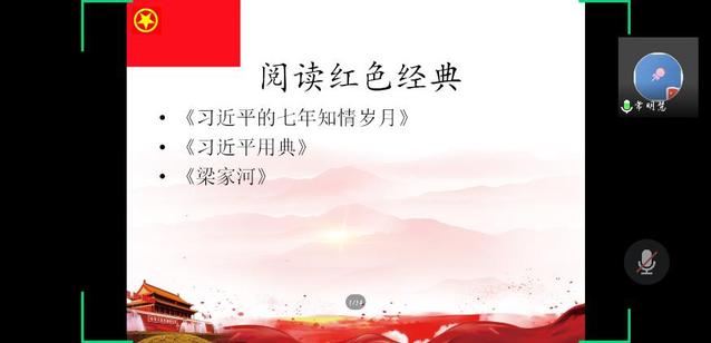 由于疫情的爆发,未能组织支部成员们到淮海战役纪念馆参观,常明慧同学便带领支部成员以观看小视频的形式,在线上“云游”淮海战役纪念馆。看馆内的革命雕像和模拟作战场景,感受当时战争的艰难和革命的不易,缅怀先烈,向他们致敬。接着,朱昊东同学组织支部成员在网上选读红色经典:《习近平的七年知青岁月》、《习近平用典》、《梁家河》,鼓励大家从经典中领略奋斗青春、努力拼搏的时代精神。最后,主持人通过网络知识竞赛形式让支部成员进行答题,加深支部成员们对革命精神、对国家主义、对奋斗意识的认识和理解。待支部成员全部完成答题后,团支书公布答案。并根据成绩为大家颁发小礼品。