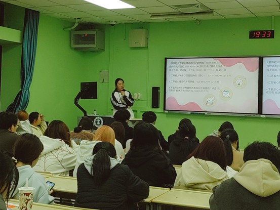 班会伊始,主持人自然引出大学生普遍面临的学业、人际、情绪等烦恼,并围绕“什么是心理健康”展开科普,深入讲解情绪管理、人际边界、自我认知与适应能力四大核心内容,并借助“乌鸦定律”“空杯效应”及森田疗法等心理学理念,引导同学们正视问题、接纳情绪、主动改变。互动环节中,“过目不忘”“你划我猜”等趣味游戏轮番上阵,让大家在轻松氛围中体会到沟通与理解的力量。随后,主持人分享了运动调节、积极社交、学会放松、保持乐观、寻求专业帮助等5种实用心理调适方法,同时重点介绍4条专业支持渠道,为同学们心理健康提供坚实后盾。 最后,同学们在卡片上写下真挚祝福投入“暖心盒”,随机抽取传递关怀与力量。
