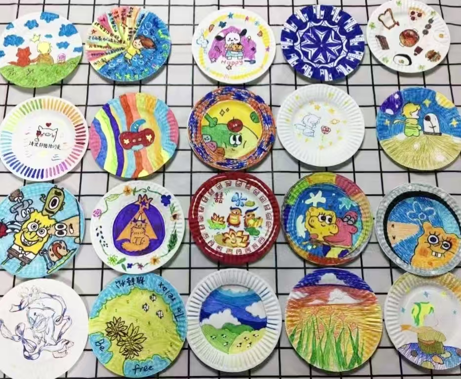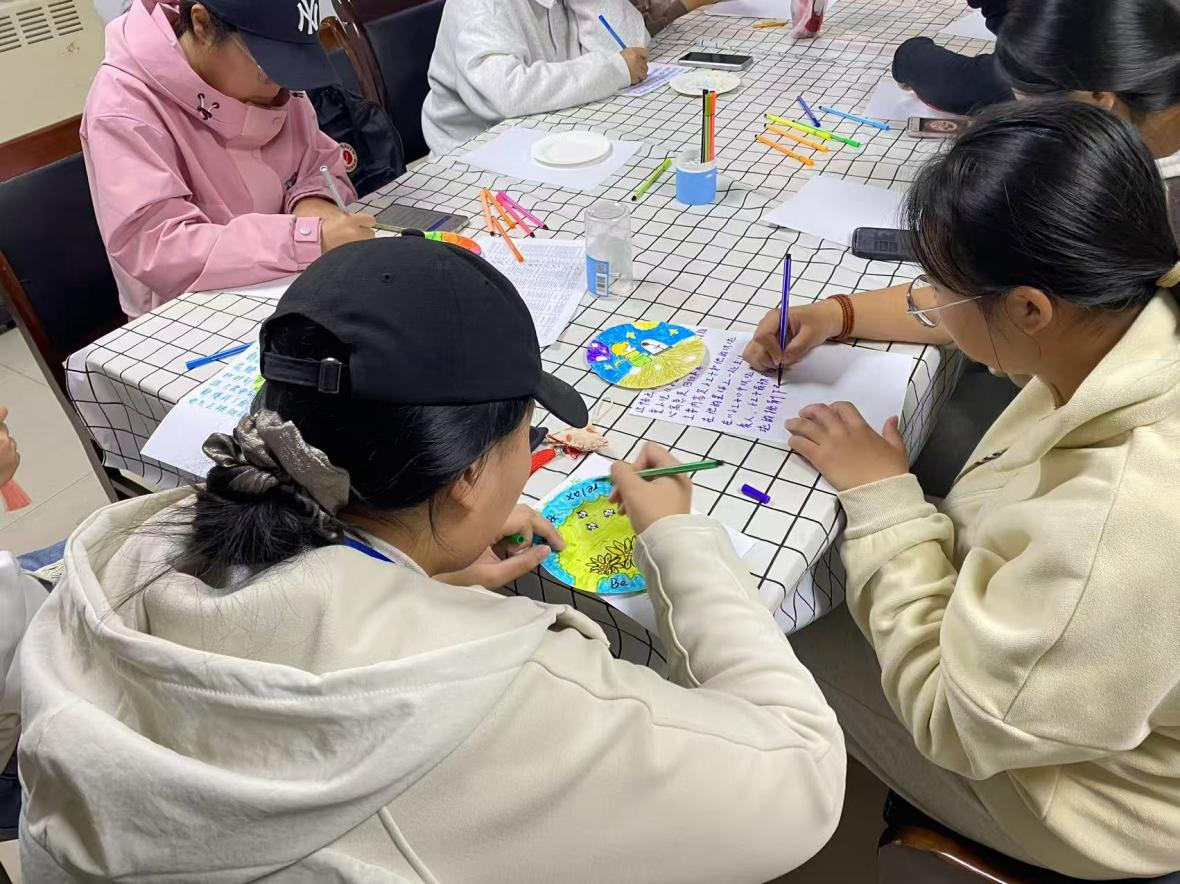 活动现场,同学们领取纸盘与彩笔后,以手绘形式进行创作。在创作过程中,学生们围绕色彩选择、画面构思等内容,运用色彩与线条抒发内心感受,将情绪与压力转化为纸盘作品。作品完成后,同学们在A4纸上写下创作思路与作品寓意,进一步梳理和表达情绪,在文字中完成自我情绪的深度复盘。