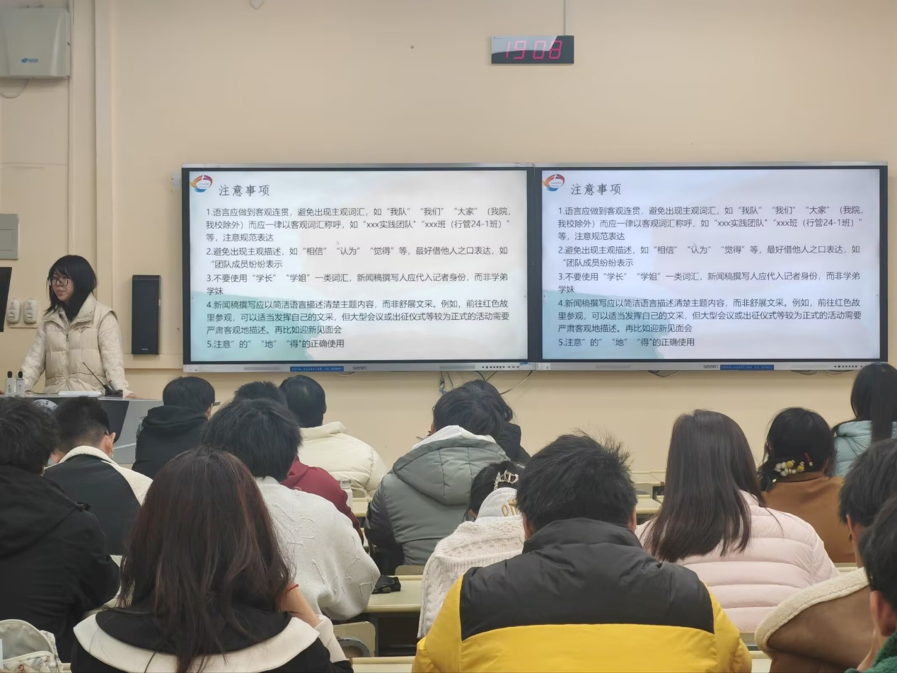 本次活动采取线下培训与线上测试相结合的方式,在保障学习效果的同时,有效巩固培训成果。在线下培训时,由院学生会各部门部长和院新闻传播中心的学生骨干倾情分享办公技能与经验,同学们认真聆听、及时记录,收获显著。在线上测试阶段,同学们充分展现了培训成果,呈现出锐意进取的学习风貌。测试结束后,由学生会评审小组对作品进行公正的判卷打分,并给予同学们及时的反馈。