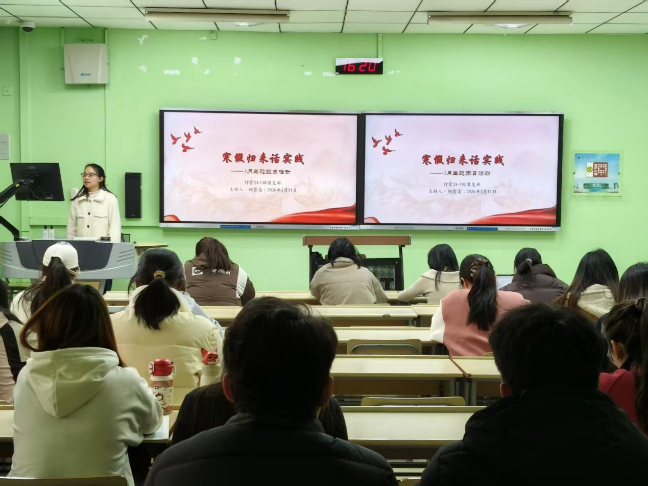 3月11日,行管24-1班在博四B203开展了“寒假归来话实践”主题团日活动。本次活动由团支书杨雪柔主持,全体同学参加。